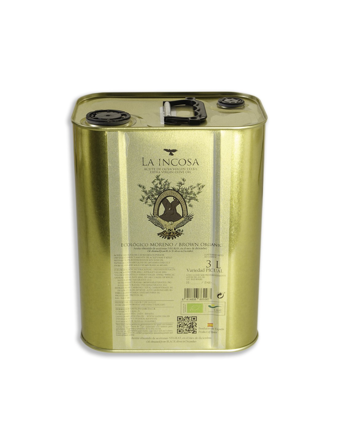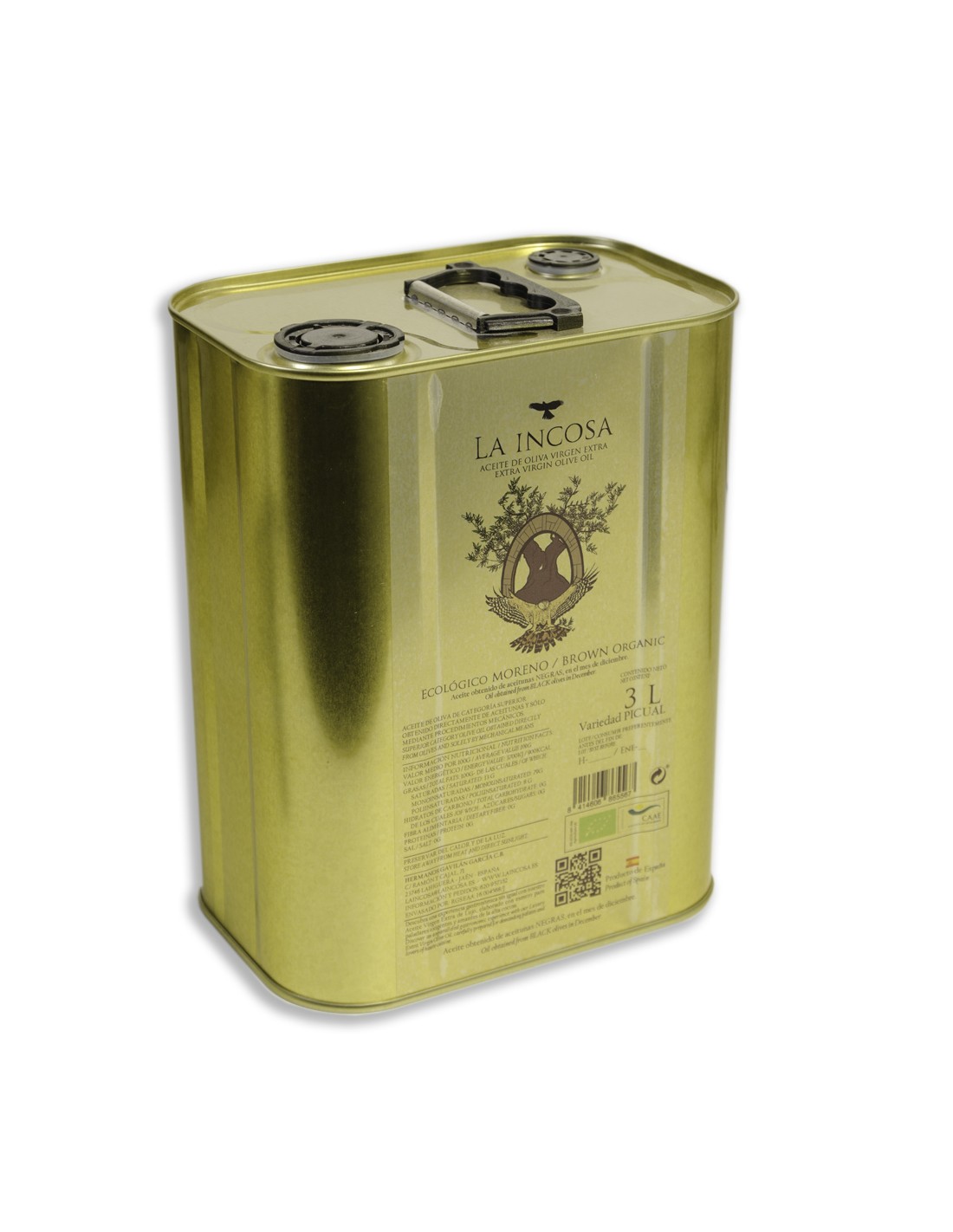 Aceite de Oliva Virgen Extra ECOLÓGICO "MORENO", envase de lata de 3 litros. (caja de 4 uds.)